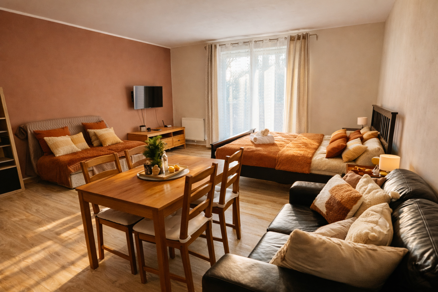 Das Apartment Riviera 13 Lipno ist ein modernes, gemütliches Studio in ruhiger Grünlage, nur wenige Schritte vom Lipno-Stausee entfernt. Perfekt für Paare, Familien und aktive Gäste. Strand (ca. 100 m), Restaurants und Freizeitangebote sind fußläufig erreichbar. Idealer Ausgangspunkt für Wassersport, Radfahren, Wandern, Skifahren und Wellness. Privater Parkplatz und schnelles WLAN inklusive.